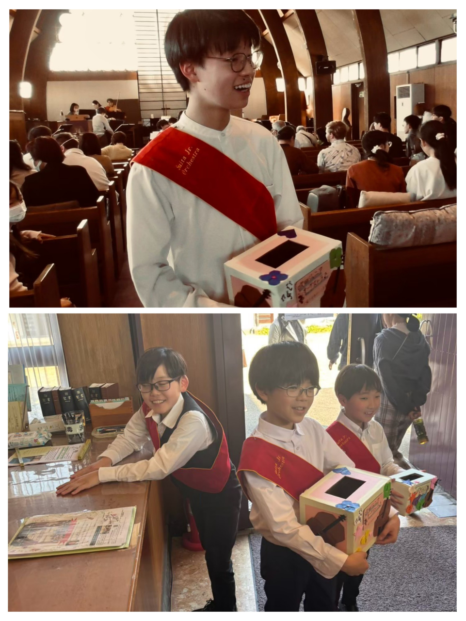 子どもたちが休憩中や終演後に演奏活動の募金を行いました。皆さま、ありがとうございました。