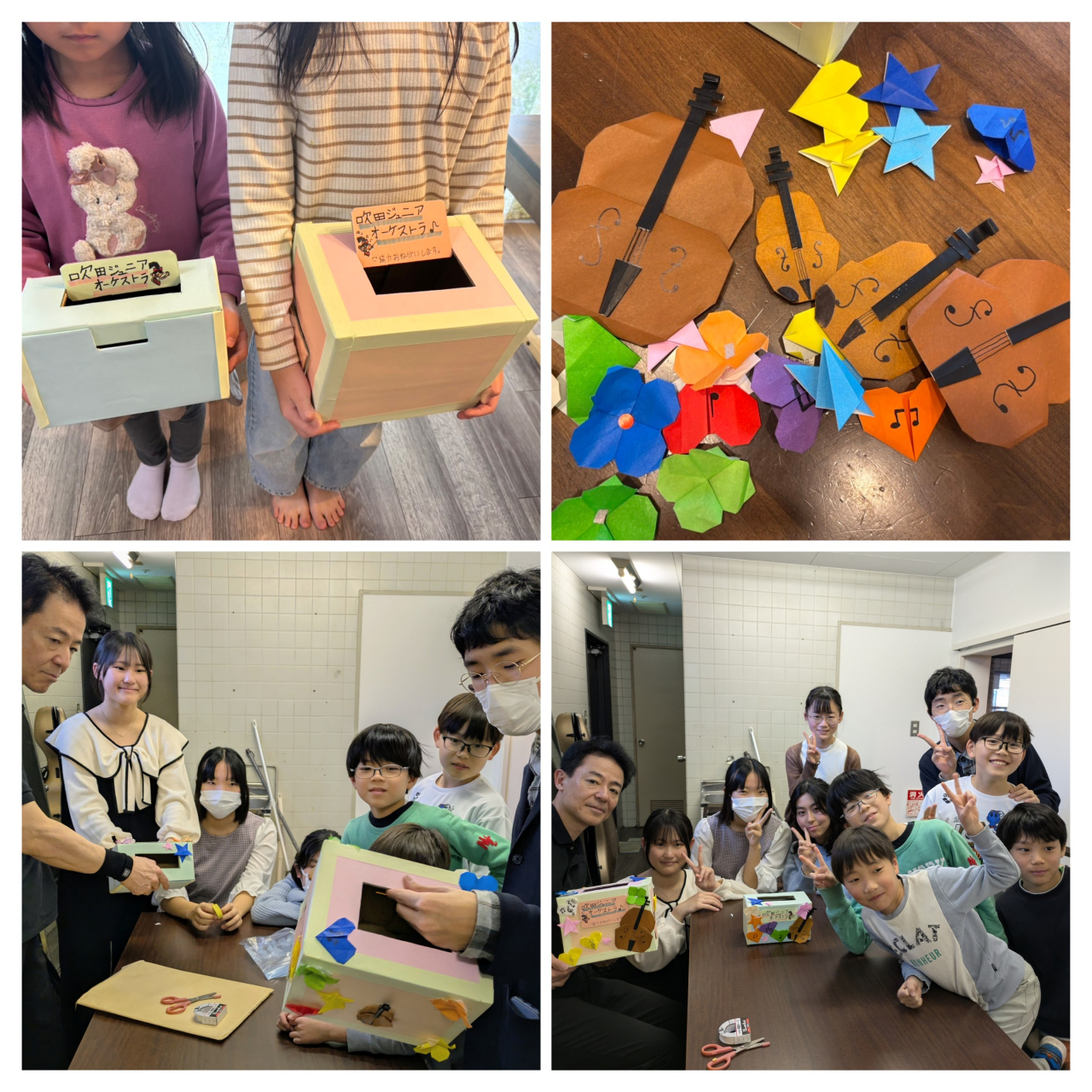 Sちゃんご家族が募金箱を作ってくださり、最後の飾りつけは、阪 哲朗先生もご一緒に!ステキな募金箱ができました。