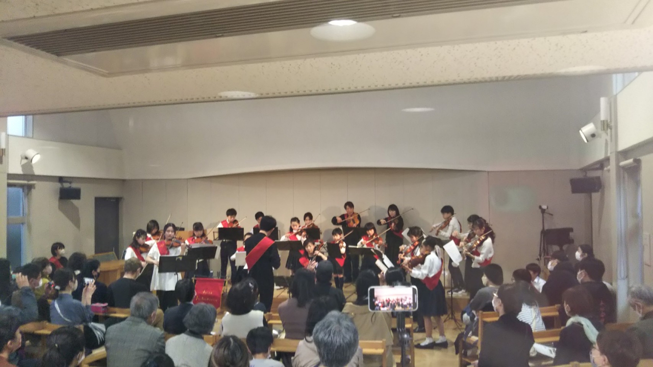 2023.03.21(火・祝)2つのコンサートが無事に終了しました。1つ目は12:00~12:40のメイシアターロビーコンサート!こちらは今年度各学期終わりに開催させていただき、8月、12月(母子会祭り)に続いて3回目となりました。そして、2つ目は16:00~17:15、同じ吹田市にある千里丘教会に場所を移し、第3回目となる定期演奏会を開催しました。