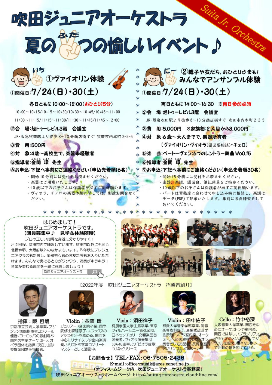 7/24(日)30(土) 吹田ジュニアオケ・夏の2つの愉しいイベントを開催いたします♬