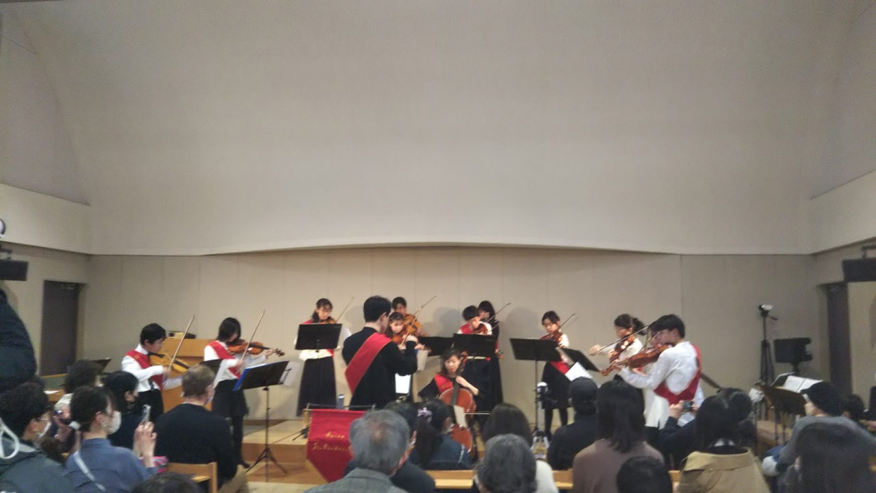 2023.03.21(火・祝)2つのコンサートが無事に終了しました。1つ目は12:00~12:40のメイシアターロビーコンサート!こちらは今年度各学期終わりに開催させていただき、8月、12月(母子会祭り)に続いて3回目となりました。そして、2つ目は16:00~17:15、同じ吹田市にある千里丘教会に場所を移し、第3回目となる定期演奏会を開催しました。